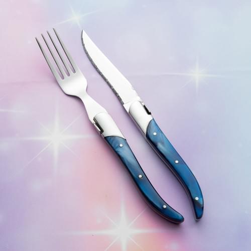 Inspired by the timeless dance of seafoam and waves, this cutlery set blends elegance with fluid artistry. The swirling blue acrylic handle reflects the serenity and depth of the ocean, while the polished stainless steel brings modern refinement to your table. A perfect harmony between design and daily pleasure.