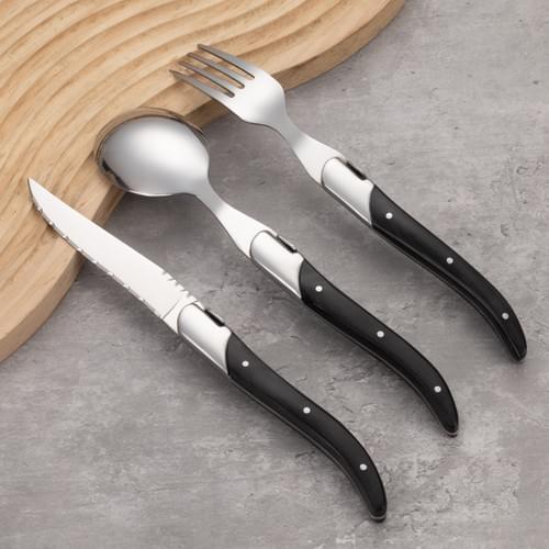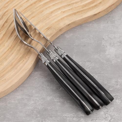 Introducing our elegant and minimalist cutlery set that combines style with functionality, perfect for every discerning dining experience. Crafted with precision and an eye for detail, this set showcases a harmonious blend of black and silver hues, creating a timeless aesthetic that's sure to elevate any table setting.
