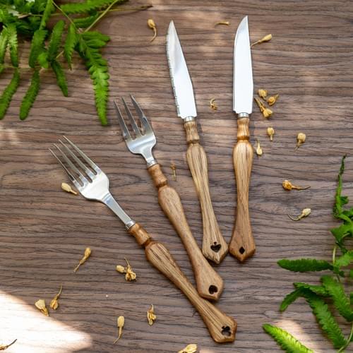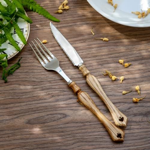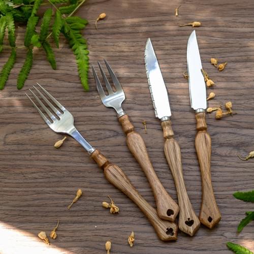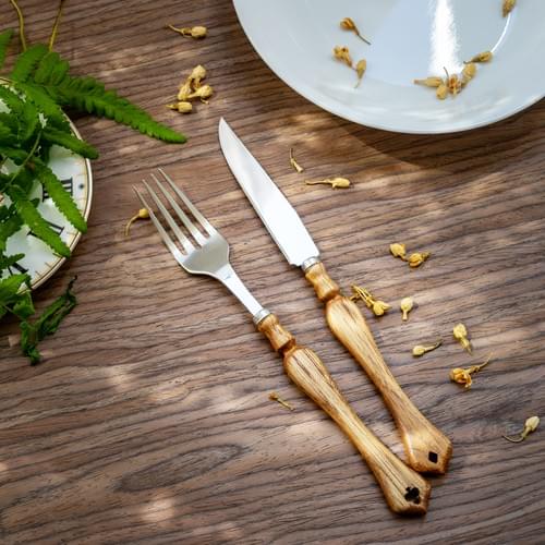 Designed for lovers of timeless style, this cutlery set blends craftsmanship with charm. Each piece is carved with care and features a polished olive wood handle — warm, unique, and wonderfully natural.